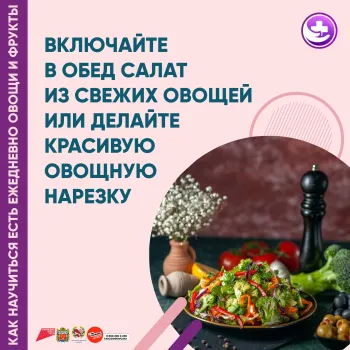 1. Включайте в обед салат из свежих овощей или делайте красивую овощную нарезку (заправляйте салат растительным нерафинированным маслом или сметаной).